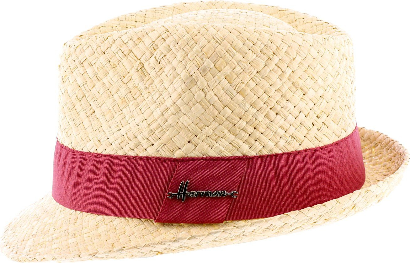 Hut mit kleiner Krempe aus leichtem, schlichtem Raffia-Stroh mit schlichtem Band
