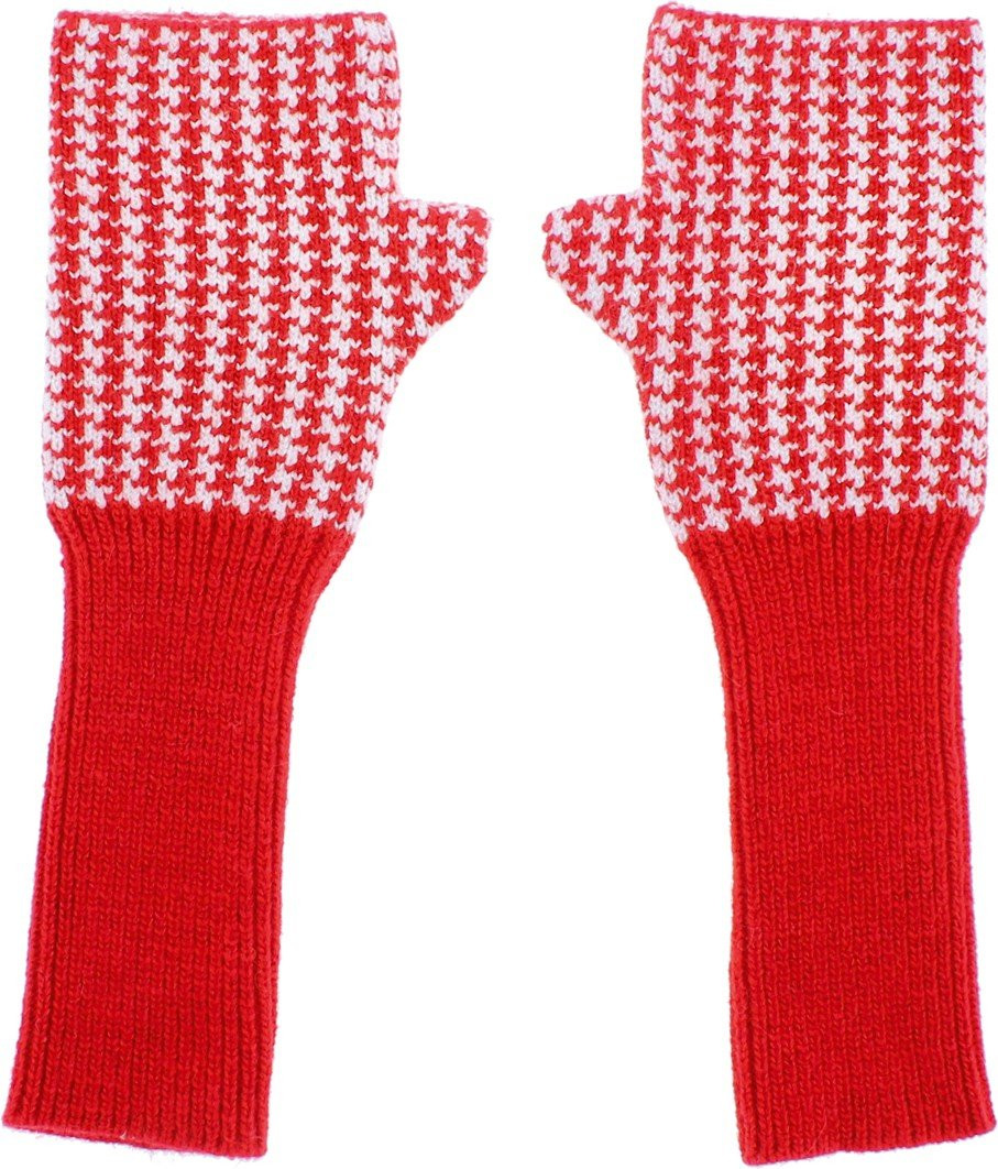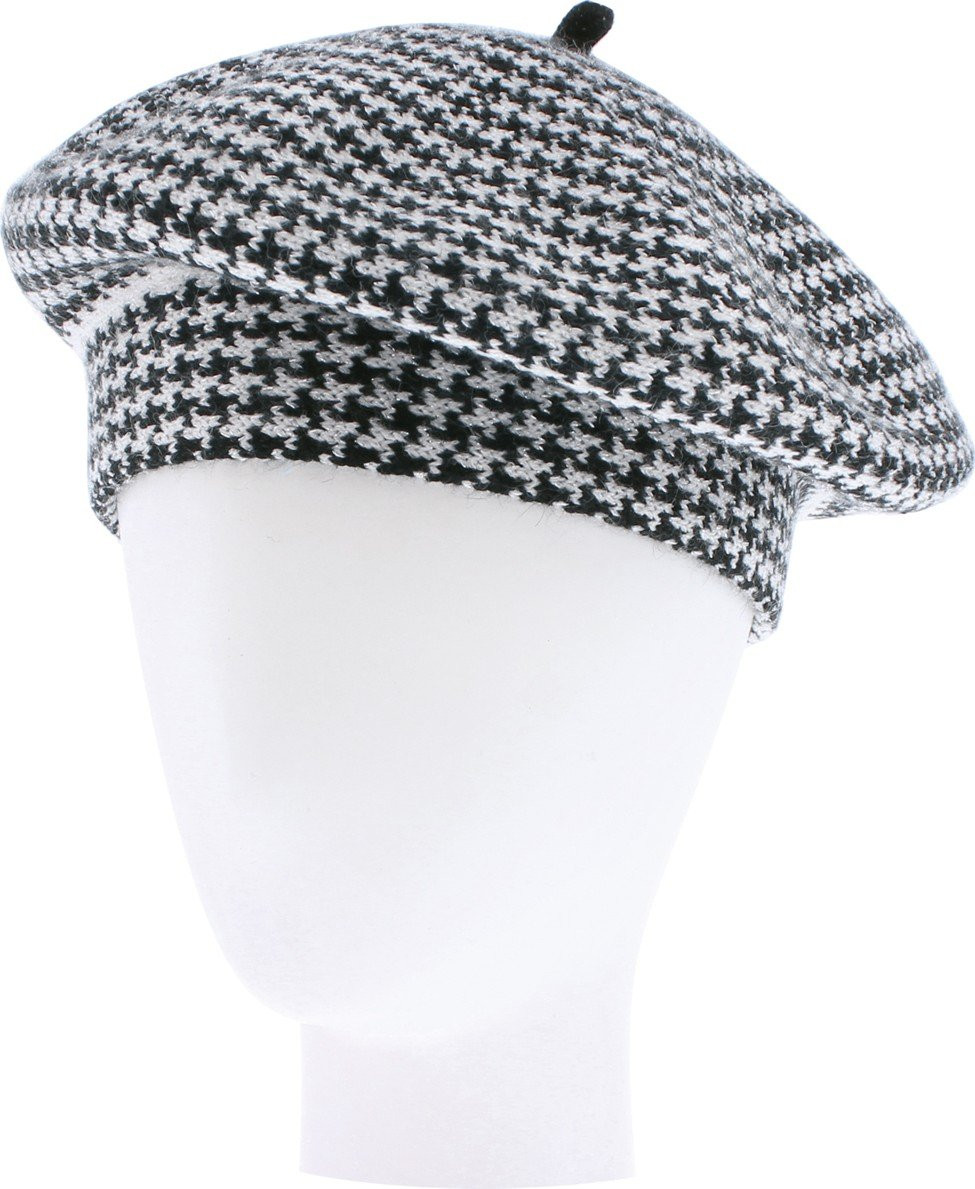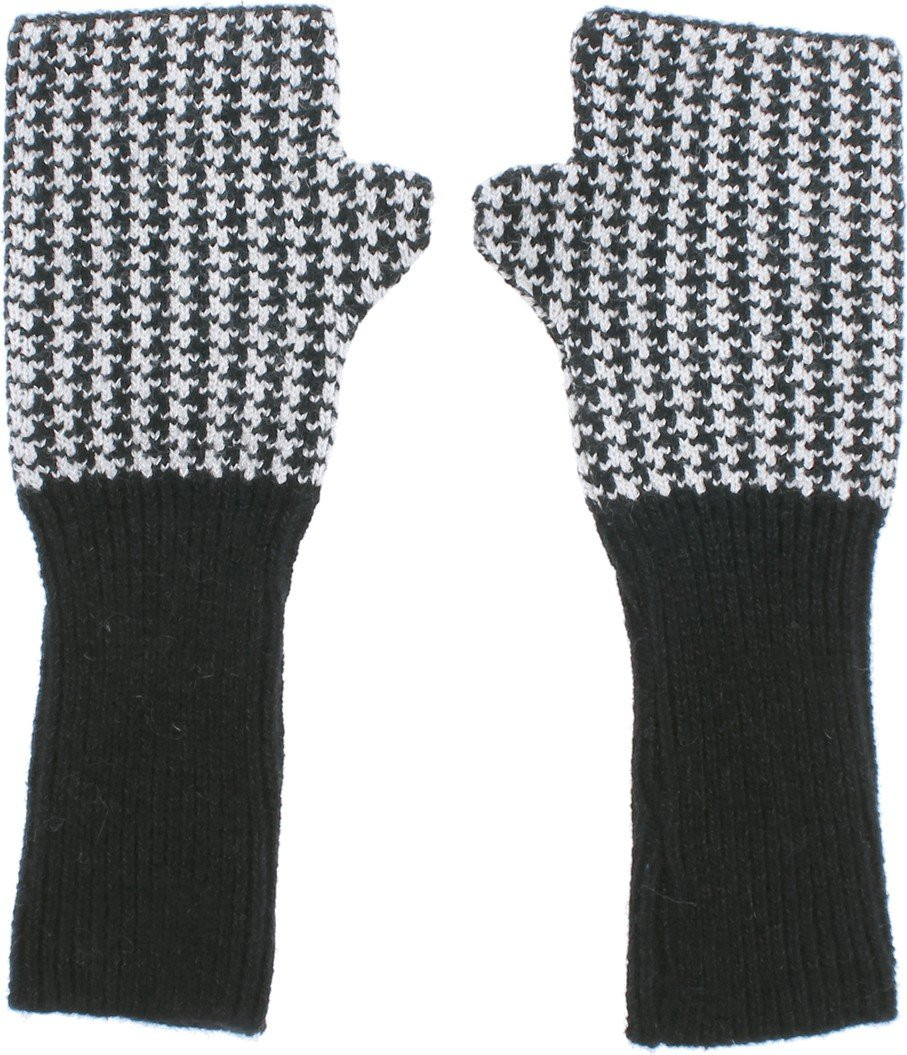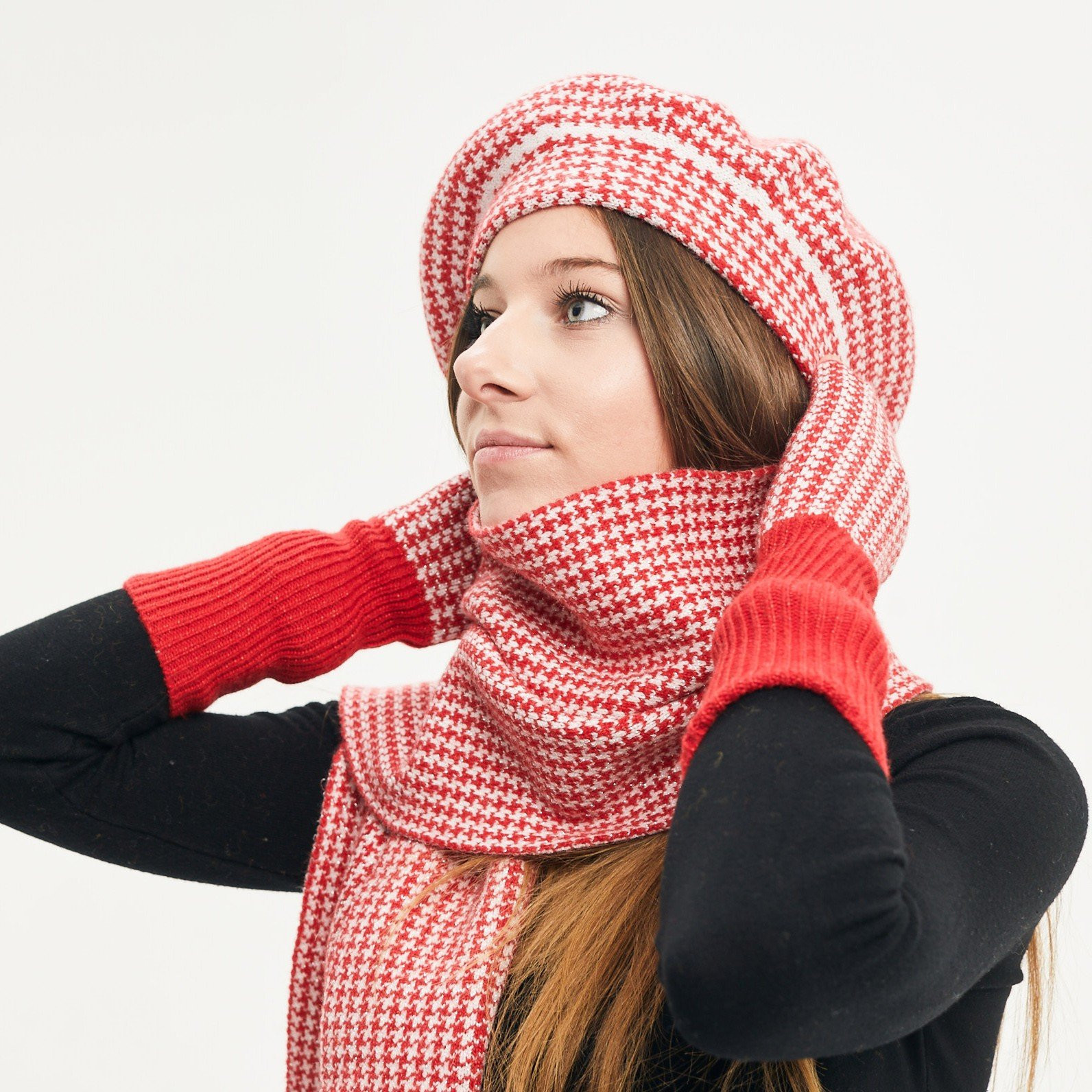 Hahnentrittmuster-Set, mit LUREX-Garn, bestehend aus einer Baskenmütze, langen Fäustlingen und einem Schal (170x30cm)