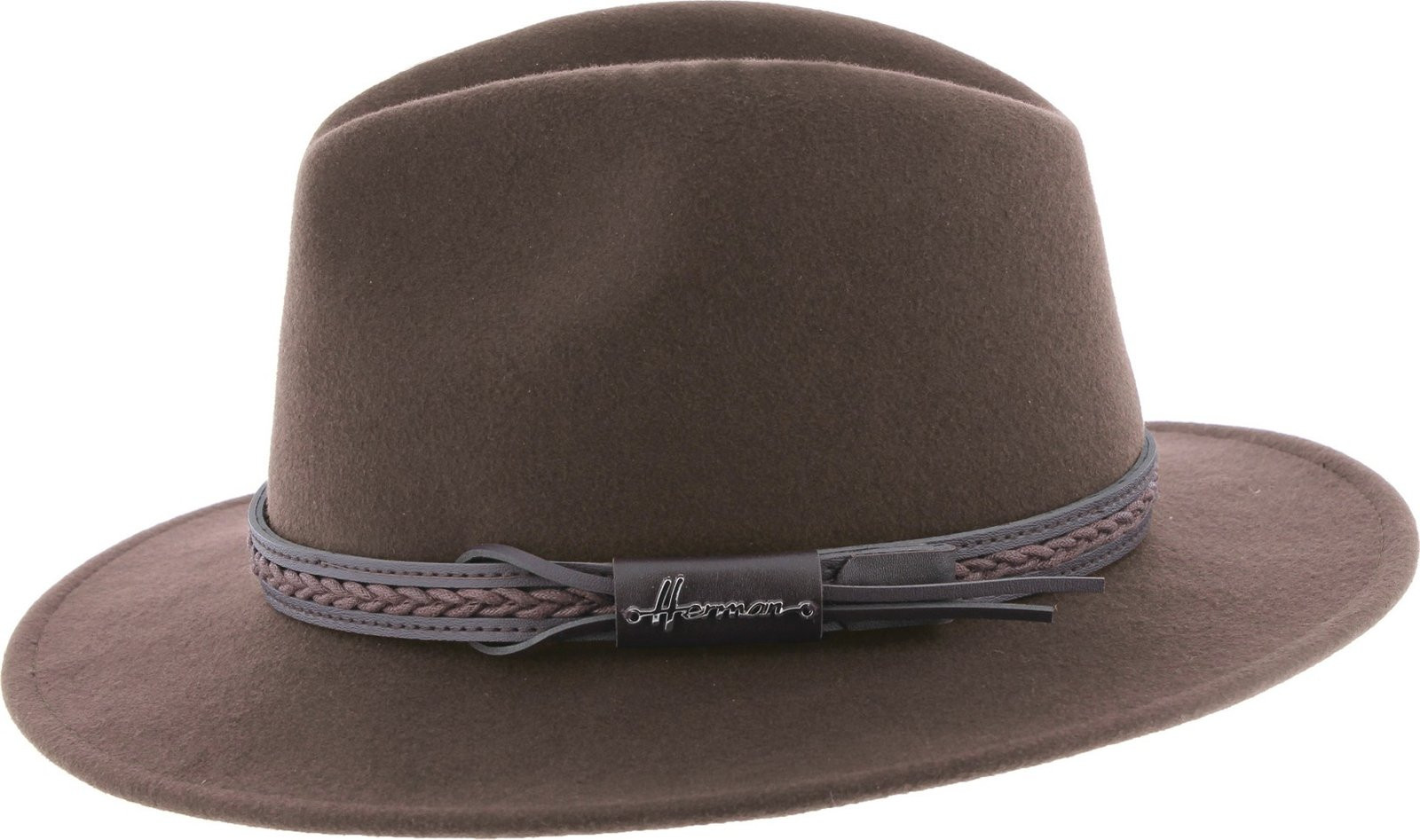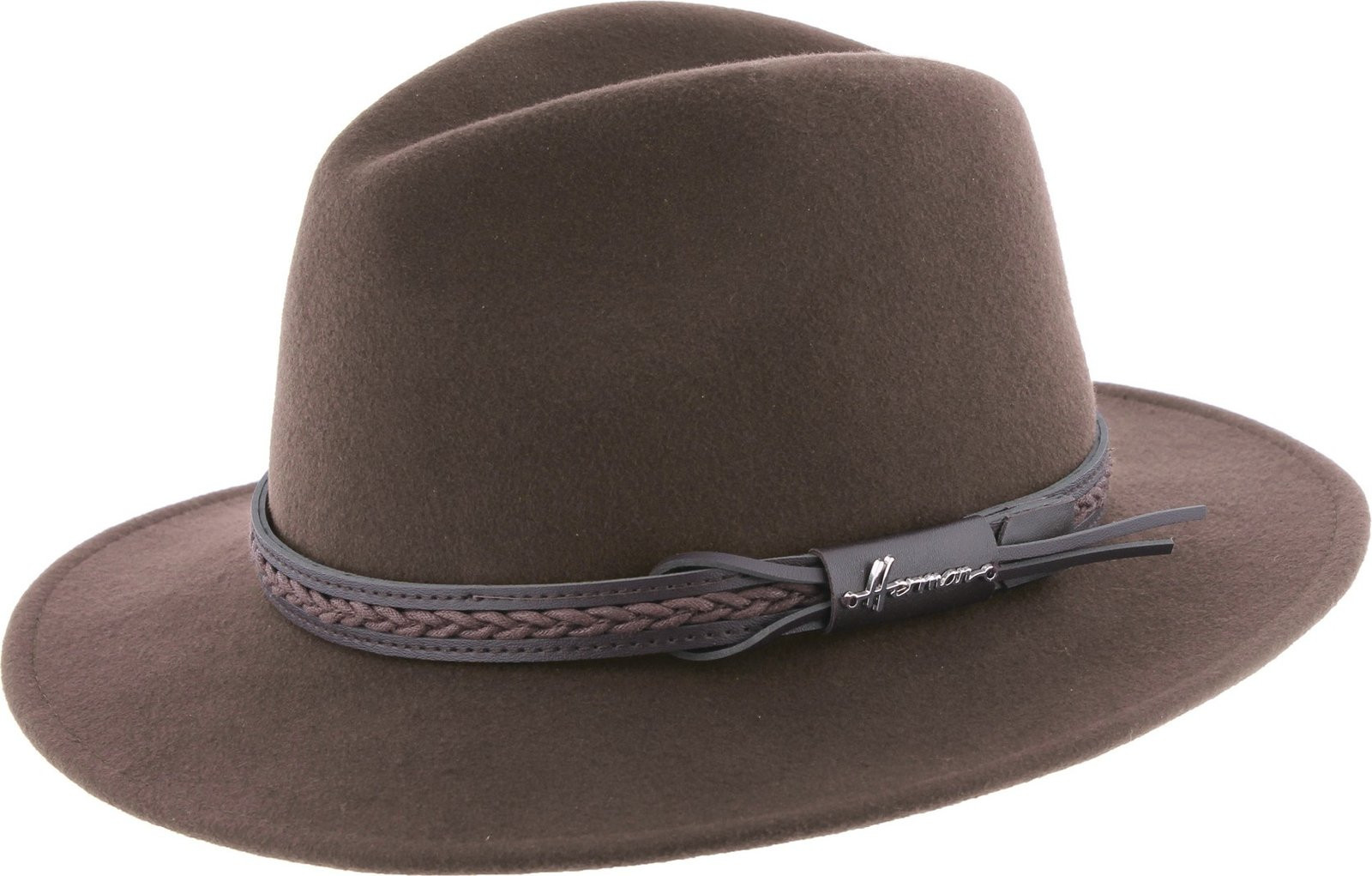 MAC TUCKER is a hat with a large cut-and-sew brim, made of wool felt. Its understated, plain design works equally well with elegant outfits and bohemian looks.