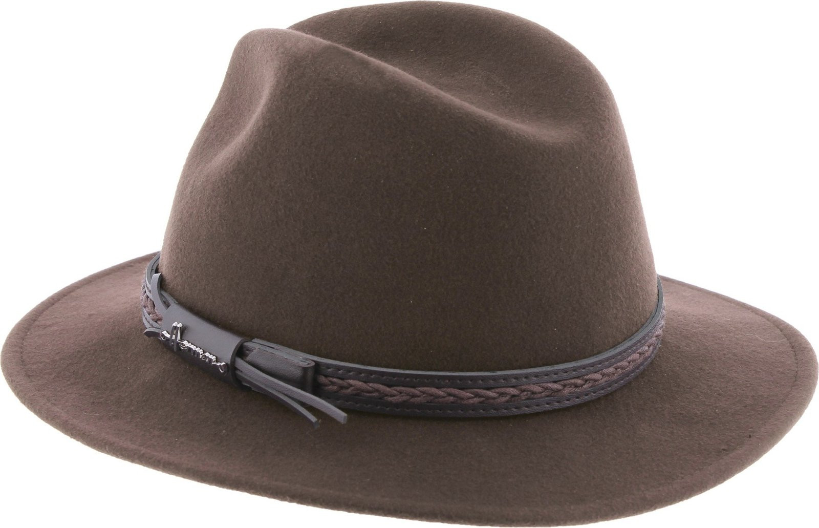 Adult hat with large, plain, cut-off brim and twisted belt and ear flaps