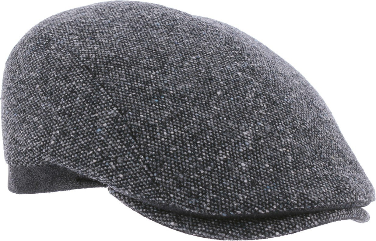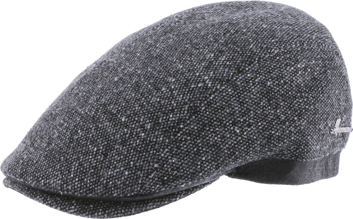 GRASBERG is an Italian flat cap in wool with a tweed pattern, enhanced by a faux leather brim for a vintage touch.