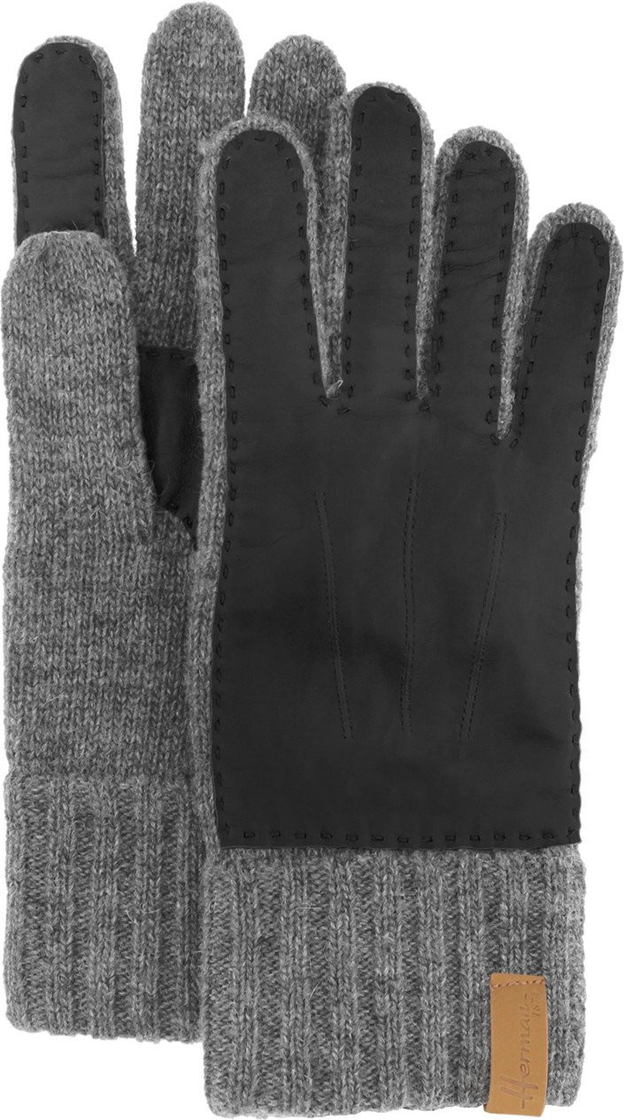 Men's adult glove in fine knitted mesh covered with lambskin pieces, touchscreen fingers