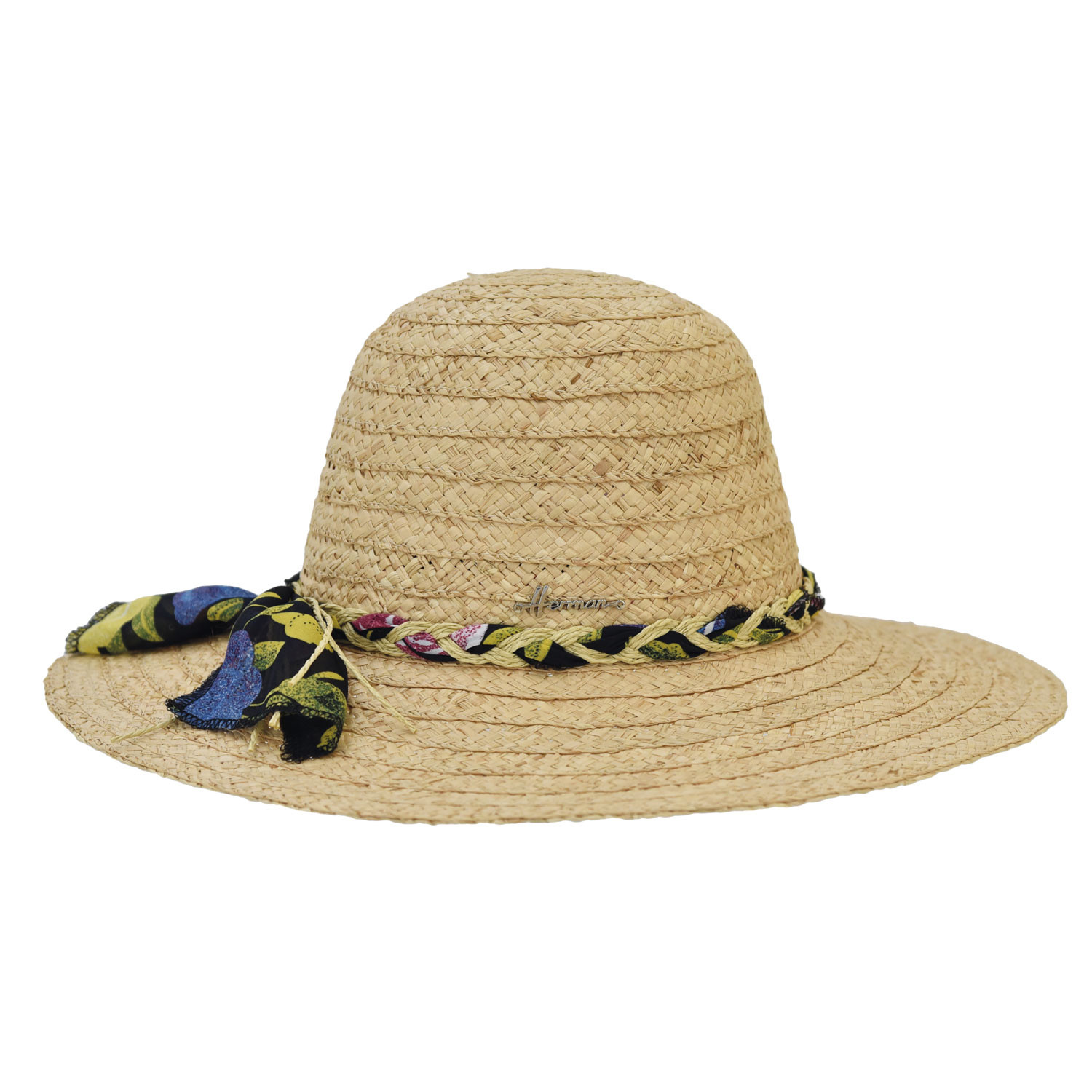 Plain lightweight raffia straw hat with scarf
