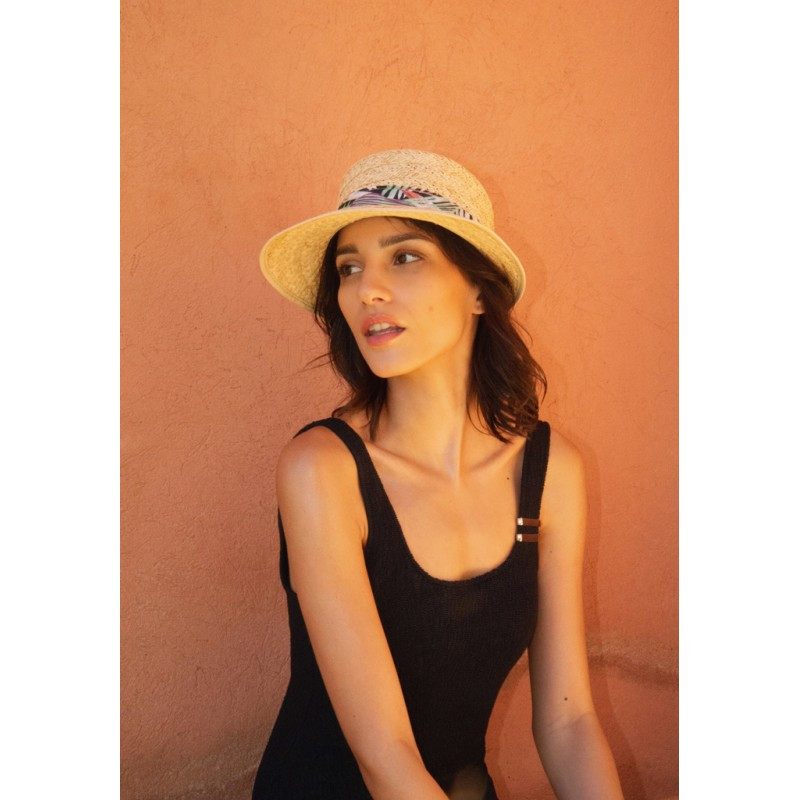 La casquette PROVIDENCE est conçue en raphia, matière naturelle respirante et légère. Son design structuré marie élégance et fraîcheur.