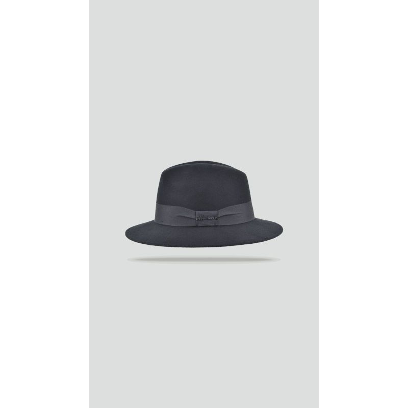 Chapeau en feutre de laine grand bord droit uni avec ruban noir