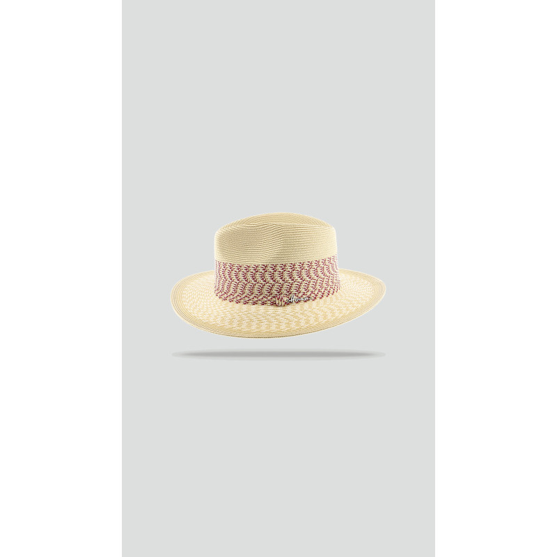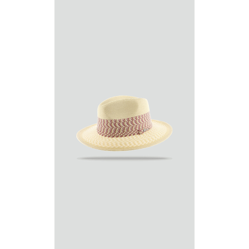 Le chapeau MILANI se distingue par son design bicolore et son grand bord légèrement ondulé. Fabriqué en paille synthétique, il allie style et protection solaire.