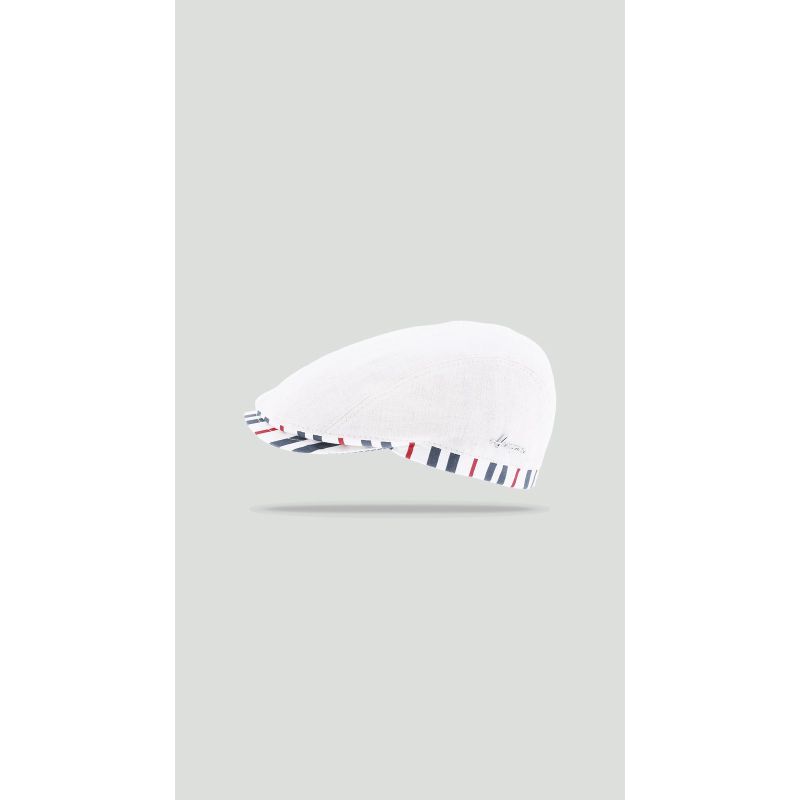 La casquette KODDY, fabriquée en Italie, est réalisée en lin pour une sensation de fraîcheur naturelle. Sa visière à rayures et son liseré contrasté apportent une touche d’élégance estivale.