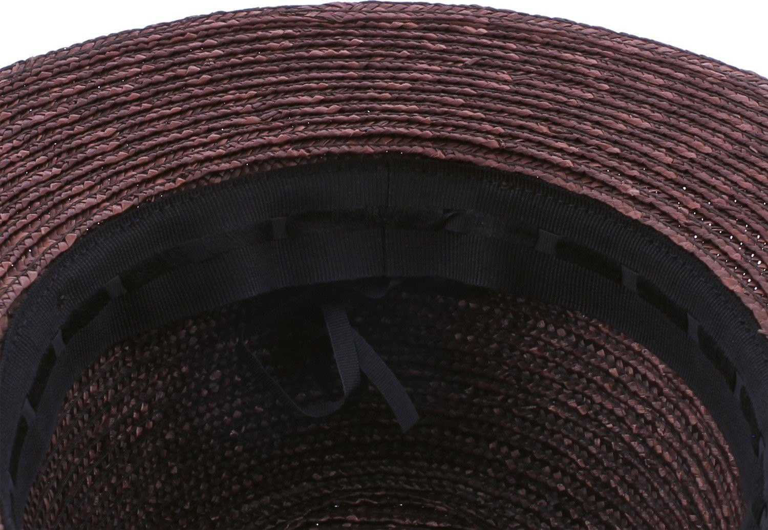 Strohoed met brede rand, riem en trekkoord aan de binnenkant.
