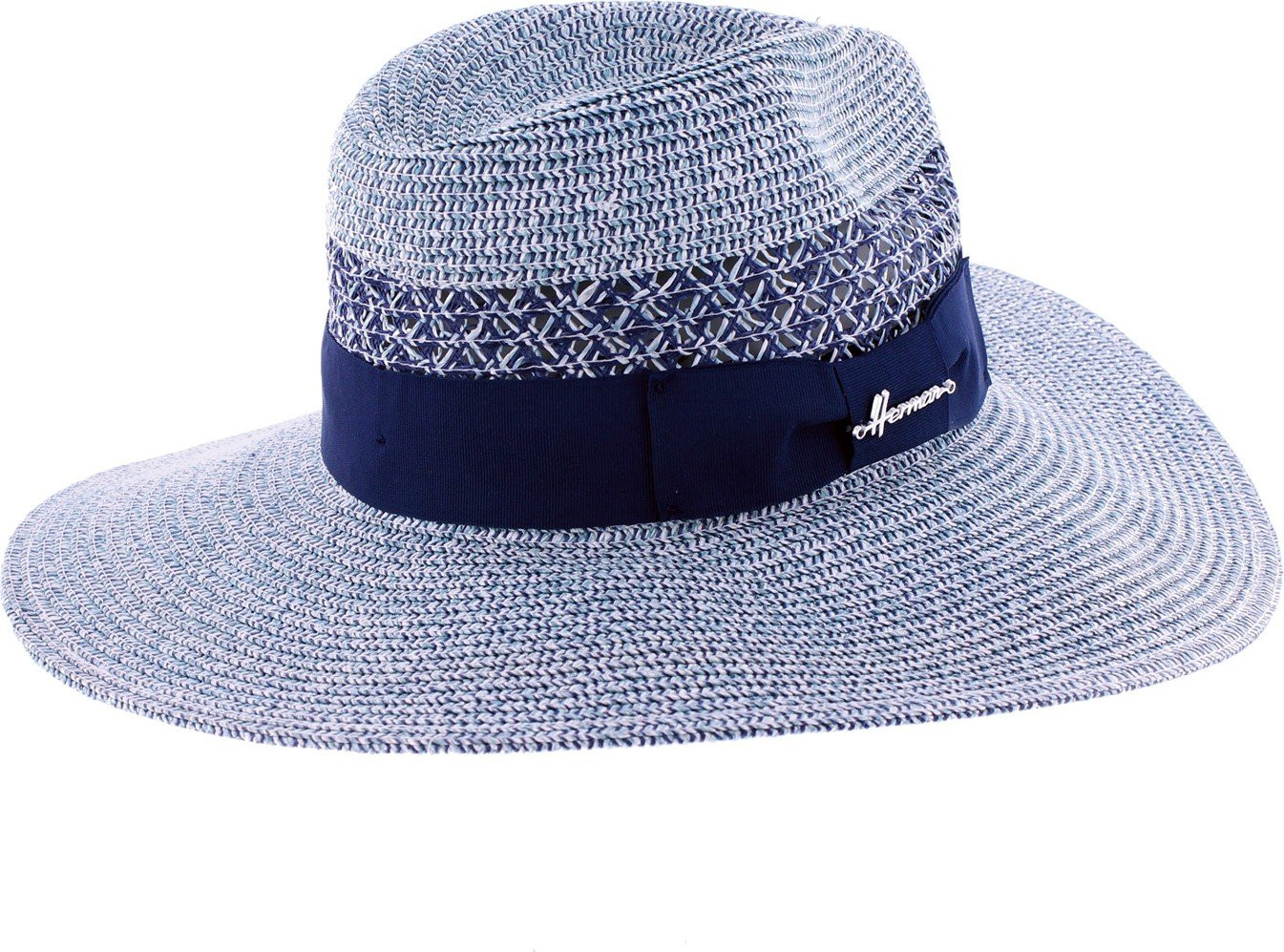Hoed met grote rand van genaaid, vervormbaar polypropyleenstro met een effen grosgrain. Met UPF3-bescherming.