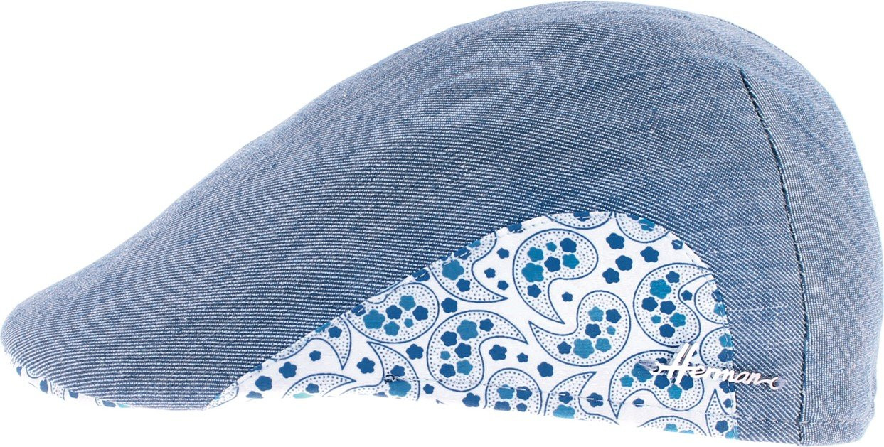 De in Italië vervaardigde platte pet PAVEL combineert linnen en katoen voor een frisse en aangename textuur. De effen stof wordt discreet geaccentueerd door een inzetstuk met patroon.