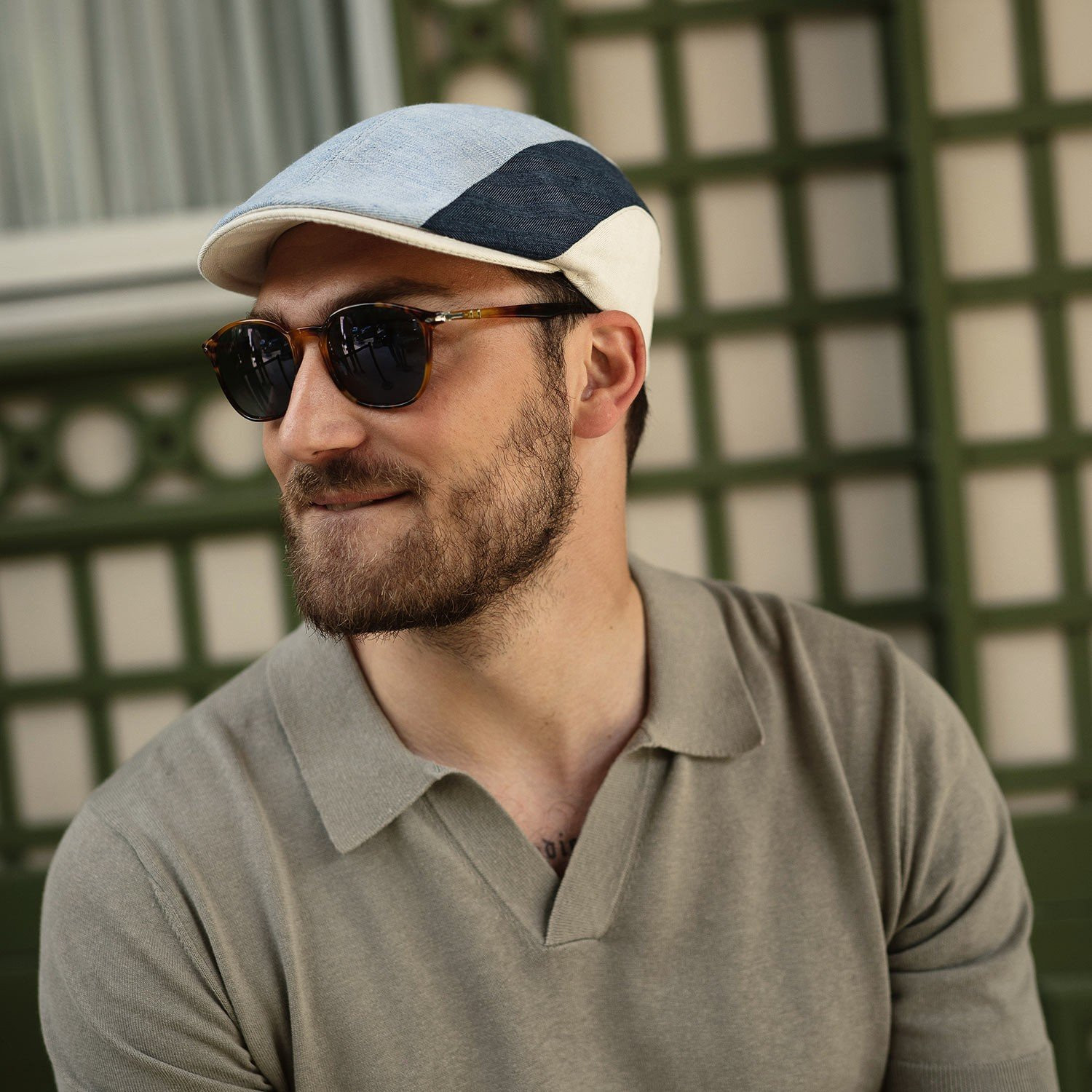De SIMON pet, gemaakt in Italië, verleidt met zijn driekleurige design en de stof van linnen en katoen, ademend en lichtgewicht.